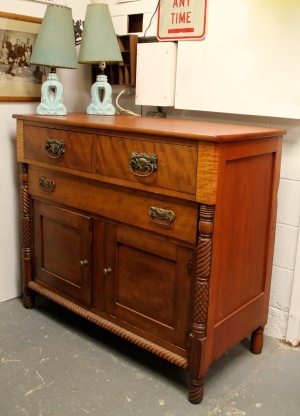 Civil War Era Mixed Wood Sideboard $525; Pair of Turquoise Lamps $60 ~ Dealer 313