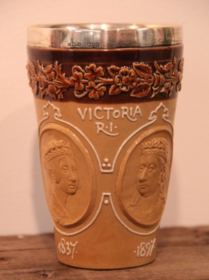 Doulton Lambeth 1897 Jubilee Sterling Rim Stoneware $69 ~ Dealer 22