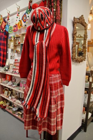 Vintage Clothing from Dealer 123 ~ Plaid Skirt & Red Sweater $12 each, Hat & Scarf $9