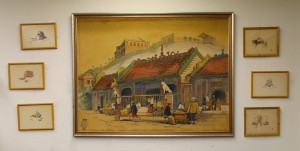 Working Mens Education Union Lecture 34 Advertising Hand Colored Linen, ca. 1880s $310; Vintage Japanese Watercolors in Bamboo Frames $35 each or Six for $150 ~ Dealer 9