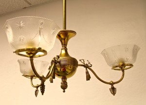 Vintage Brass Gas Style Electric Chandelier (SOLD)