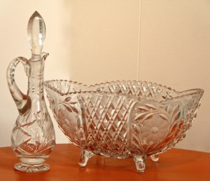 Cut Glass Cruet $15, Cut Glass Footed Bowl $25 ~ Dealer 4131