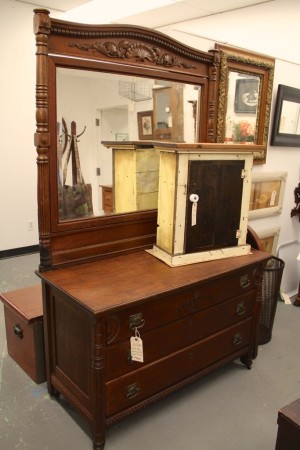 Antique Dark Oak Dresser with Large Mirror (SOLD), Vintage Medicine Cabinet Made from Old Materials $125 ~ Dealer 71